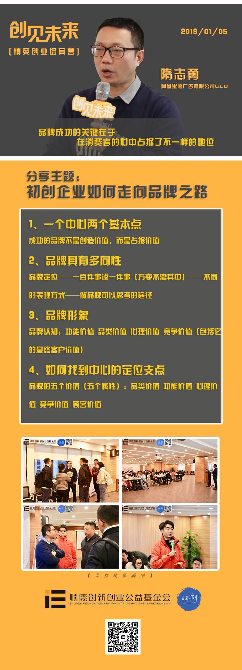 品牌定位是一个品牌的开端,销售是企业发展的必经之路。“创见未来”精英创业培育营第四周课程——《品牌定位》与《销售策略》,带领创业者深刻认识品牌与企业的意义,跟着小编,我们一起来回顾精彩内容。