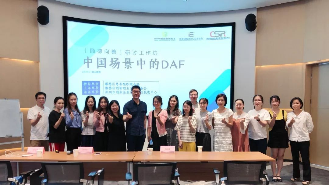 9月24日下午,由顺德区慈善组织联合会指导,顺德区创新创业公益基金会主办,深圳市创新企业社会责任促进中心承办的「顺德向善」研讨工作坊-中国场景中的DAF在佛山顺德区大良举行。本次研讨工作坊邀请了上海第一财经公益基金会副秘书长、SHMBA金融分会执委会委员周旭峰老师与大家分享交流。